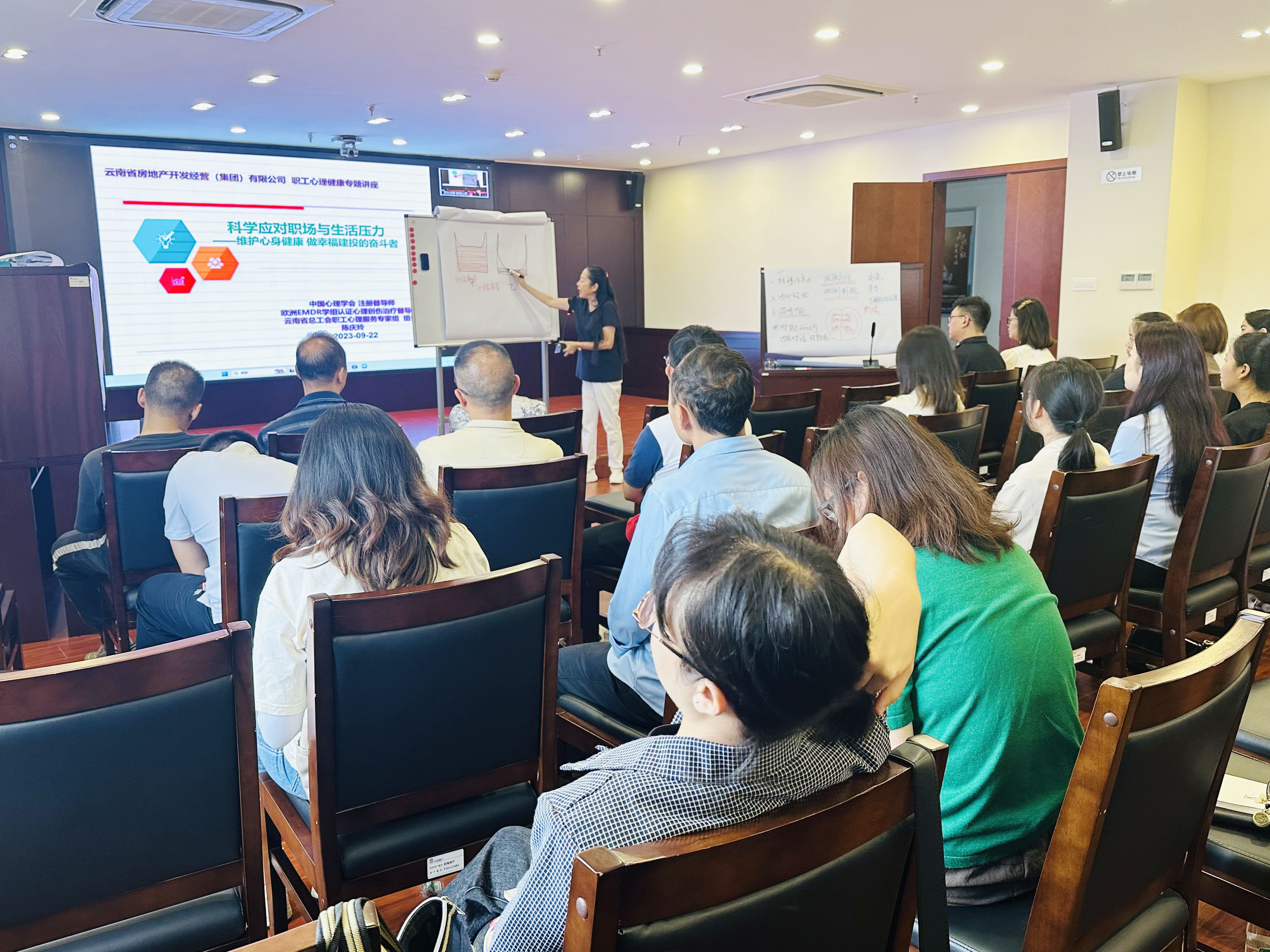 9月22日下午,公司舉辦“科學(xué)應(yīng)對(duì)壓力,維護(hù)心理健康,做新時(shí)代幸福的奮斗者”健康心理專題講座,特邀中國(guó)心理學(xué)會(huì)注冊(cè)導(dǎo)師、歐洲EMDR學(xué)組認(rèn)證心理創(chuàng)作治療督導(dǎo)師、云南省總工會(huì)職工心理服務(wù)專家組組長(zhǎng)陳慶玲為職工授課。公司工會(huì)主席、副總經(jīng)理胡亞東及本部各部門、各基層單位職工100余人參加講座。
