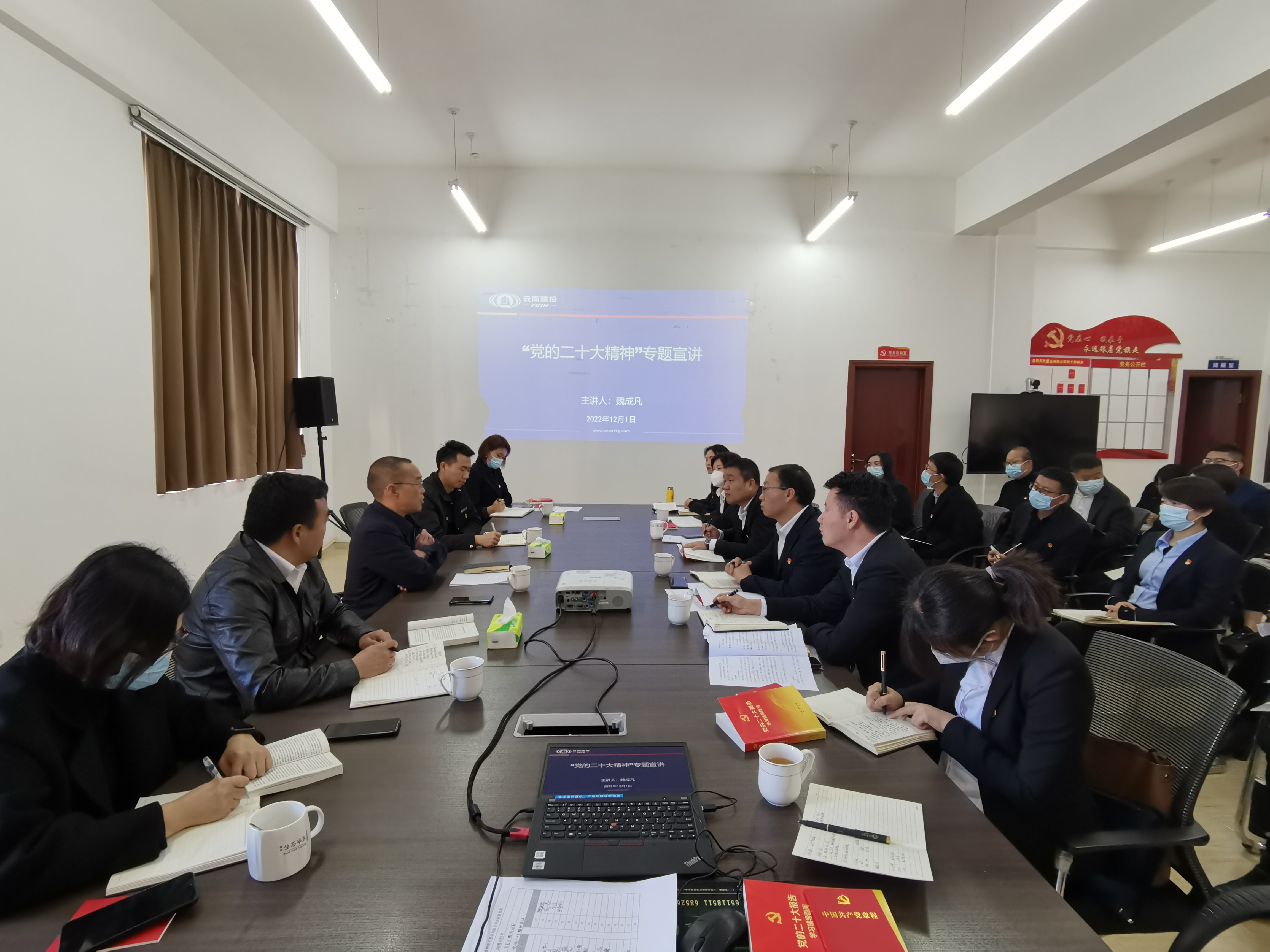 12月1日,公司黨委副書記、董事長魏成凡到邦元公司、商銳公司宣講黨的二十大精神,邦元公司和商銳公司全體黨員干部職工參加。