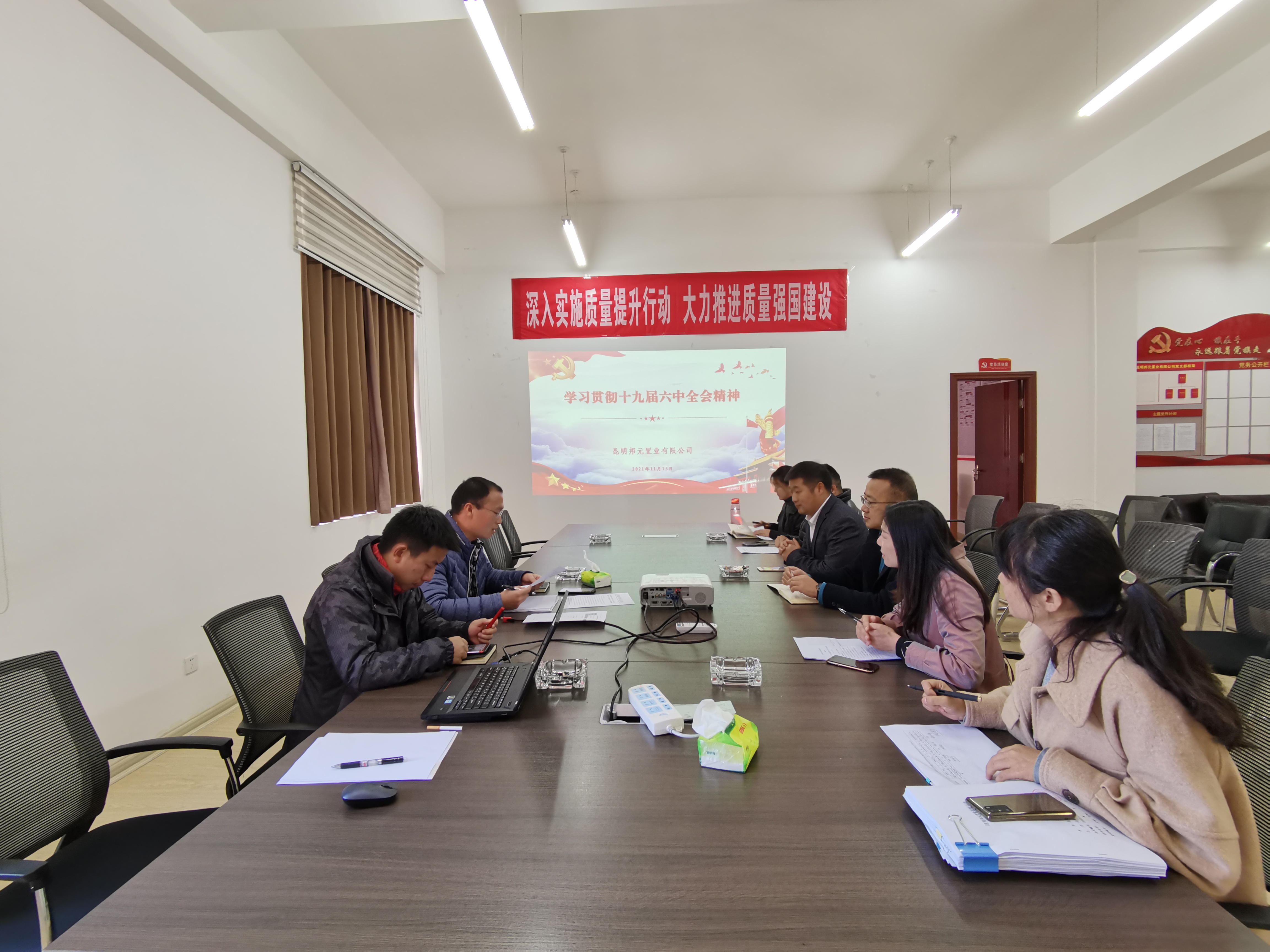 玉溪片區(qū)黨支部:黨的十九屆六中全會是在黨成立一百周年的重要?dú)v史時刻,在黨和人民勝利實(shí)現(xiàn)第一個百年奮斗目標(biāo)、全面建成小康社會,正在向著全面建成社會主義現(xiàn)代化強(qiáng)國第二個百年奮斗目標(biāo)邁進(jìn)的重大歷史關(guān)頭,召開的一次具有重大歷史意義的會議。黨支部要求,全體管理人員要在認(rèn)真學(xué)習(xí)貫徹黨的十九屆六中全會精神的基礎(chǔ)上,深入思考學(xué),結(jié)合實(shí)際學(xué),學(xué)以致用,以實(shí)際行動為玉溪高鐵新城項(xiàng)目的建設(shè)和發(fā)展貢獻(xiàn)力量。