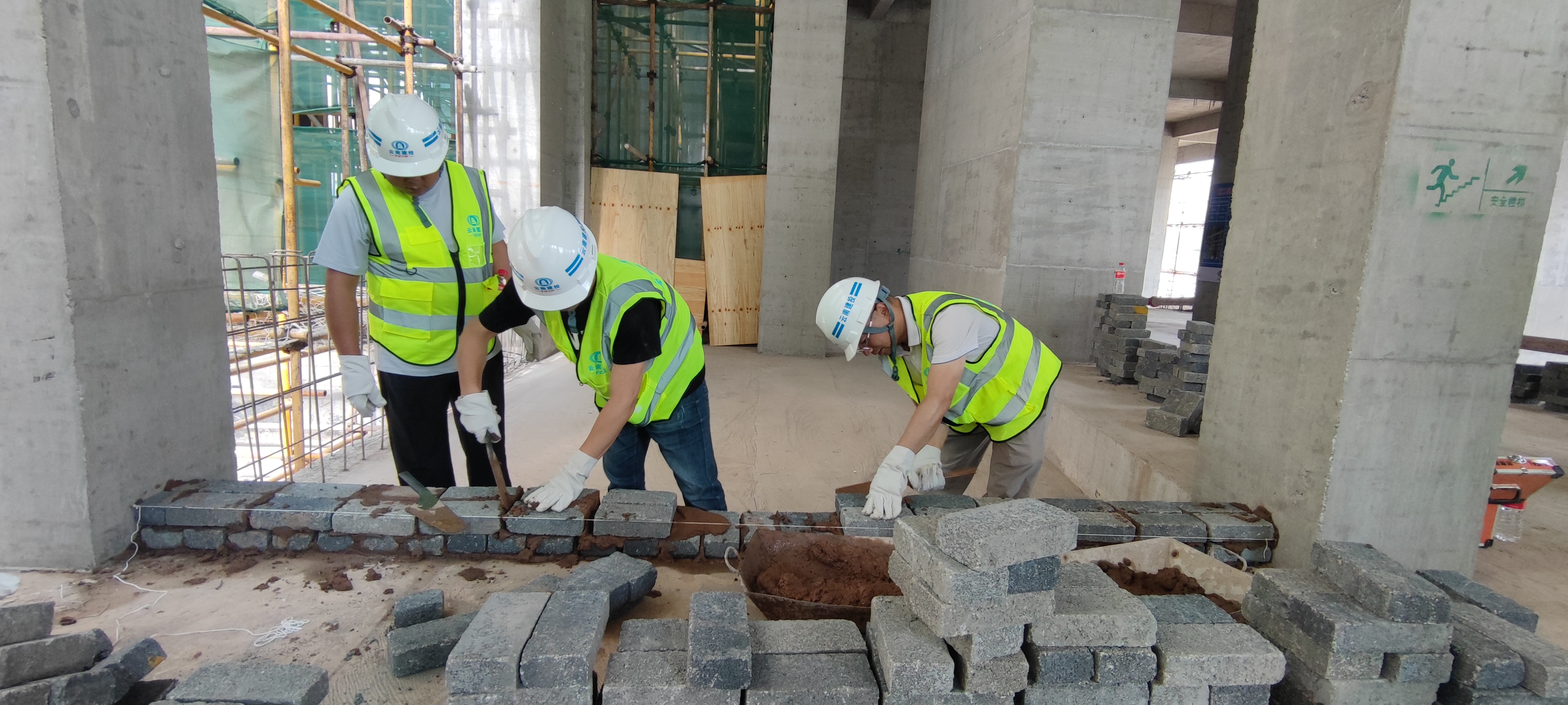 活動先后進行了重溫入黨誓詞、座談交流、先進工作者交流發(fā)言等環(huán)節(jié),最后的勞動技能實踐將活動推向高潮,所有人員隨機分為三組,分別進行砌磚、扎鋼筋、堆放材料的實踐活動。在各組組長的講解和指導下,大家紛紛動手,干得熱火朝天,并在《團結就是力量》的激昂歌聲中結束。