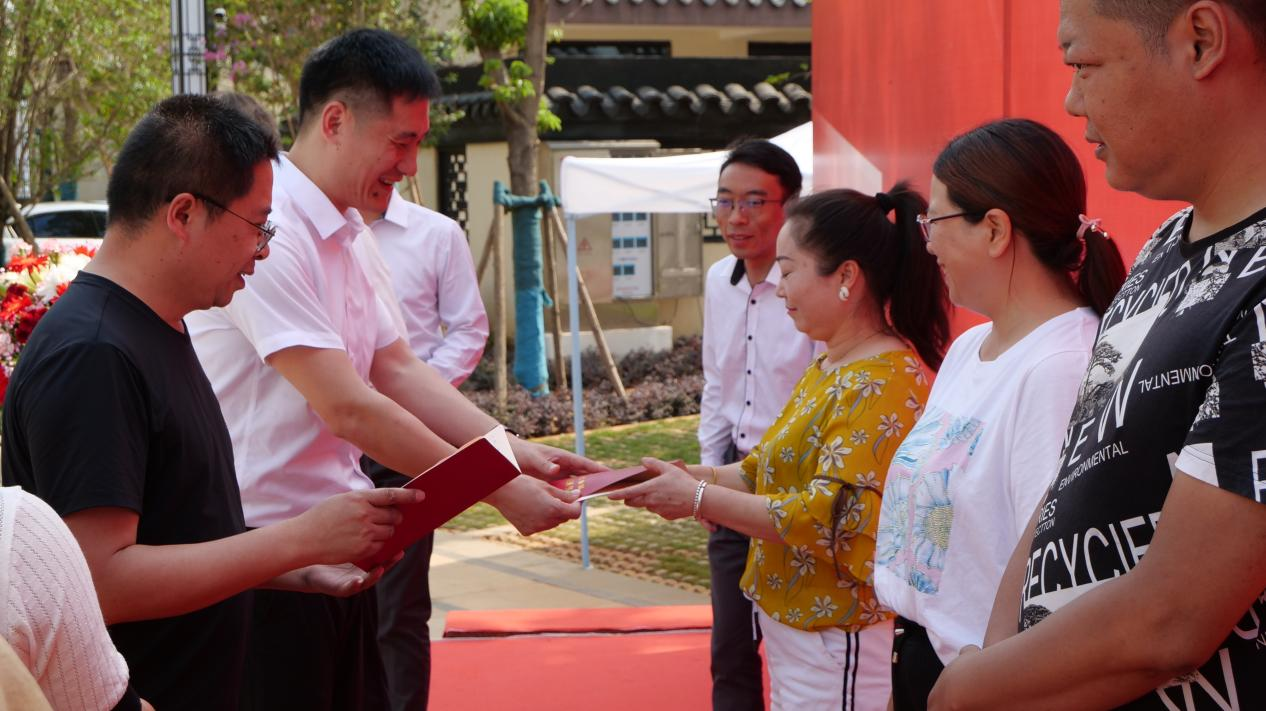 5月9日,紅河錦府項(xiàng)目“交房即交證”活動(dòng)盛大開啟。個(gè)舊市自然資源確權(quán)登記局局長(zhǎng)傅光祥,個(gè)舊市不動(dòng)產(chǎn)登記中心副主任楊鵑、莫嬌和通泰公司、個(gè)舊和順源公司執(zhí)行董事、總經(jīng)理胡錫波,黨支部書記、工會(huì)主席安黔出席活動(dòng)。