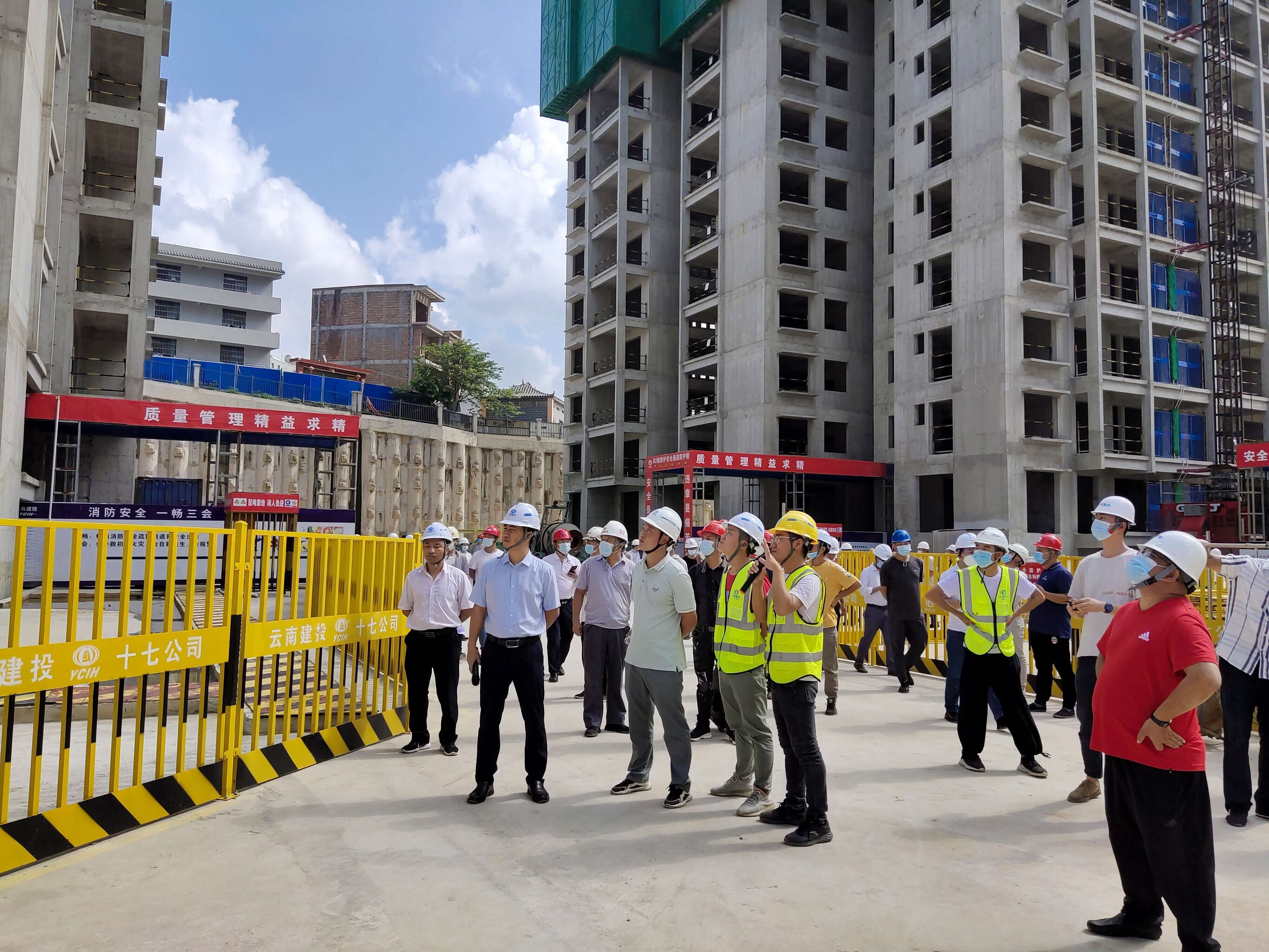 7月28日上午,廣南縣建設(shè)施工領(lǐng)域創(chuàng)衛(wèi)工作暨安全生產(chǎn)和消防安全現(xiàn)場(chǎng)觀摩會(huì)在文山分公司承建的棚戶(hù)區(qū)改造安置房建設(shè)項(xiàng)目現(xiàn)場(chǎng)召開(kāi)。廣南縣縣委常委、常務(wù)副縣長(zhǎng)冉永富出席觀摩會(huì),縣住房和城鄉(xiāng)建設(shè)局相關(guān)負(fù)責(zé)人,全縣各建設(shè)、施工、監(jiān)理企業(yè)代表約五十余人參與現(xiàn)場(chǎng)觀摩,并就消防安全管理、主體責(zé)任落實(shí)、標(biāo)化工地、文明施工等方面展開(kāi)經(jīng)驗(yàn)交流。