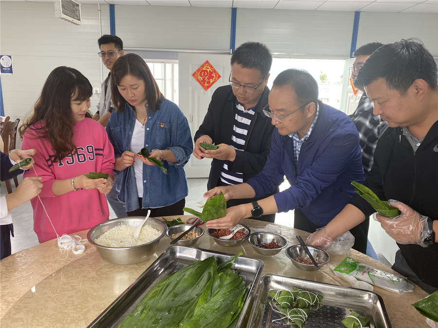 會(huì)后,項(xiàng)目部職工食堂為大家準(zhǔn)備好粽葉、糯米、花生、大棗等食材,職工紛紛親自動(dòng)手包起了粽子,讓大家感受了濃濃節(jié)日氛圍,增加了職工之間的凝聚力,促進(jìn)了項(xiàng)目工作積極推進(jìn)。