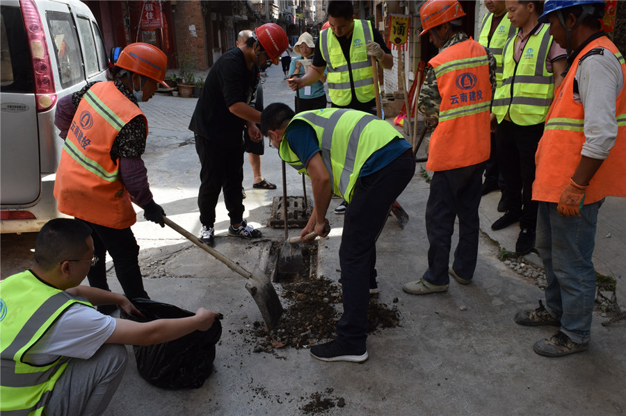 文山分公司黨支部認(rèn)真踐行“我為群眾辦實(shí)事”號召,切實(shí)解決居民出行難和治理城市衛(wèi)生盲點(diǎn),在社區(qū)的統(tǒng)一安排和黨支部的精心組織下,全體黨員干部職工統(tǒng)一佩戴黨徽亮明黨員身份,對興隆街老舊下水管道和十余個窨井進(jìn)行集中清淤疏通。在服務(wù)活動中,大家充分發(fā)揚(yáng)集團(tuán)高原鐵軍精神,把群眾困難牢記心間,克服高溫酷暑、惡臭、交通擁堵等困難,不怕臟不怕累,合理利用撬桿、鋤頭、鐵錘、鐵鍬等工具,分工協(xié)作、互相配合、全力攻堅(jiān)。撬下水道蓋板、疏通、清淤、恢復(fù)、清洗路面……經(jīng)過三個多小時的連續(xù)奮戰(zhàn),最終完成對該條街道十余處老舊下水管道的疏通任務(wù),解決了汛期來臨前街道居民出行難的困境,以實(shí)際行動和實(shí)干精神展現(xiàn)出省房公司基層黨員干部職工服務(wù)社區(qū)的先鋒模范作用。