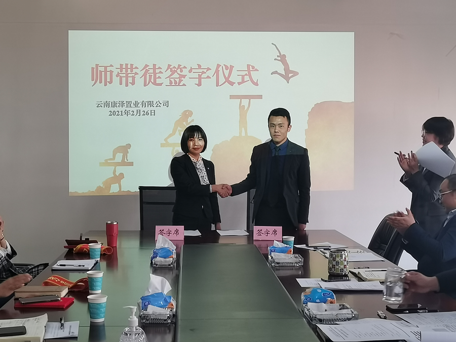 2月26日,《云南康澤置業(yè)有限公司師帶徒實(shí)施方案》在公司2021年工作會(huì)上順利通過(guò),并現(xiàn)場(chǎng)舉行了簽字儀式,師帶徒協(xié)議的簽定標(biāo)志著該方案正式付諸實(shí)施。這是康澤公司立足實(shí)際,面向未來(lái)開(kāi)展人才培養(yǎng)計(jì)劃的關(guān)鍵一環(huán),是對(duì)完善人才選拔,加大人才培養(yǎng),建立人才儲(chǔ)備的有益探索和嘗試。