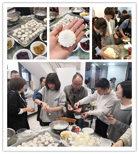 手工制作月餅活動(dòng)開(kāi)始時(shí),現(xiàn)場(chǎng)坐滿了前來(lái)參加活動(dòng)的職工,活動(dòng)負(fù)責(zé)人詳細(xì)講解了冰皮月餅的制作流程:揉面團(tuán)、包餡、放模具內(nèi)按壓成型后,同事們躍躍欲試,大家迫不及待地拿起了原材料和工具,按照步驟一步步完成,當(dāng)看到一個(gè)個(gè)漂亮的月餅在自己的手中誕生時(shí),大家都異常興奮和自豪,現(xiàn)場(chǎng)歡聲笑語(yǔ),熱鬧非凡。